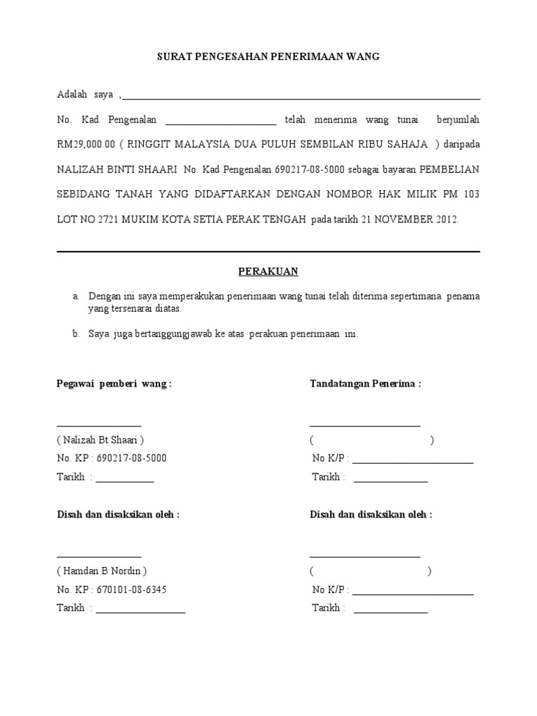 Related : Contoh Surat Penerimaan Wang Tunai / Dimana penerimaan uang tersebut akte ini berlaku sebagai tanda terima..