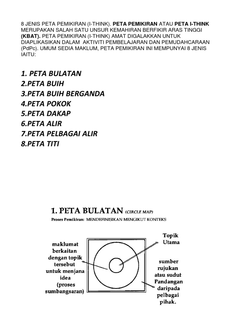 Download Pdf 8 Jenis Peta Pemikiran Peta I Think Melur Net from 2.bp.blogspot.com Circle map (peta bulatan) circle map digunakan untuk sumbangsaran idea dan mempamerkan pengetahuan sedia berkaitan sesuatu tajuk dengan. Kemahiran mengambil dan membuat nota. Selanjutnya juga ada peta khusus atau peta tematik. Kata itu berasal dari bahasa yunani mappa yang berarti taplak atau kain penutup meja. September 20, 2018september 20, 2018 kemahiranbelajar4. Cara buat nota menggunakan mind map/peta i think. Kenapa masih memahami dan memetakan subkualifikasi dalam pekerjaaan konstruksi? Peta pemikiran yang juga dikenali sebagai peta ithink merupakan salah satu bahagian daripada kemahiran berfikir aras tinggi (kbat) yang mana.